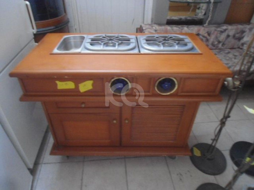 μεταχειρισμένο με 2 εστίες, με 1 συρτάρι και 2 ντουλάπια με πόρτα για φιάλη γκαζιού. Περιστρεφόμενες ρόδες. διαστάσεις 1.03x0.55x83 Τιμή 500 € (625/7)