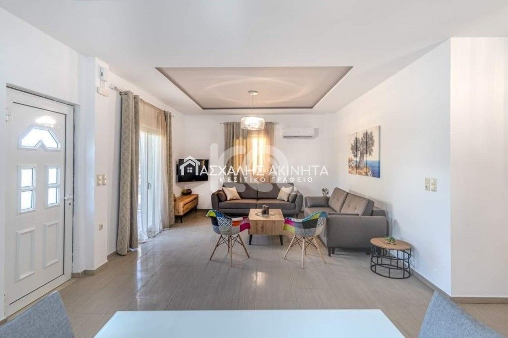 Νεόδμητο, προσόψεως, πλήρως επιπλωμένο και ηλεκτρικά εξοπλισμένο, 3αρι διαμέρισμα, 100 τ.μ, ισόγειο. Διαθέτει μεγάλο ενιαίο χώρο καθιστικό – σαλόνι- κουζίνα, 2 υ/δ, λουτρό με μπανιέρα, w/c με ντουζιέρα, κουφώματα αλουμινίου, 3 κλιματιστικά, ηλιακό θερμοσίφωνα, αποθήκη, 2 πατάρια, μετρητή ΔΕΗ και νερού, τέντες, βεράντα, κήπο. Όχι δεκτά κατοικίδια. Σε ήσυχη γειτονιά, κοντά σε θάλασσα. Δίνεται και για βραχυχρόνια μίσθωση. Τιμή ενοικίου 850 ευρώ.