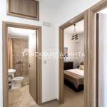 Newly built, frontage, fully furnished and electrically equipped, 3-room apartment, 100 sq.m., ground floor. It has a large single living room – living room-kitchen, 2 bedrooms, bathroom with bathtub, w/c with shower, aluminum frames, 3 air conditioners, solar water heater, storage room, 2 lofts, PPC and water meter, awnings, terrace, garden. No pets accepted. In a quiet neighborhood, near the sea. It is also given for short-term rental. Rent price 850 euros.