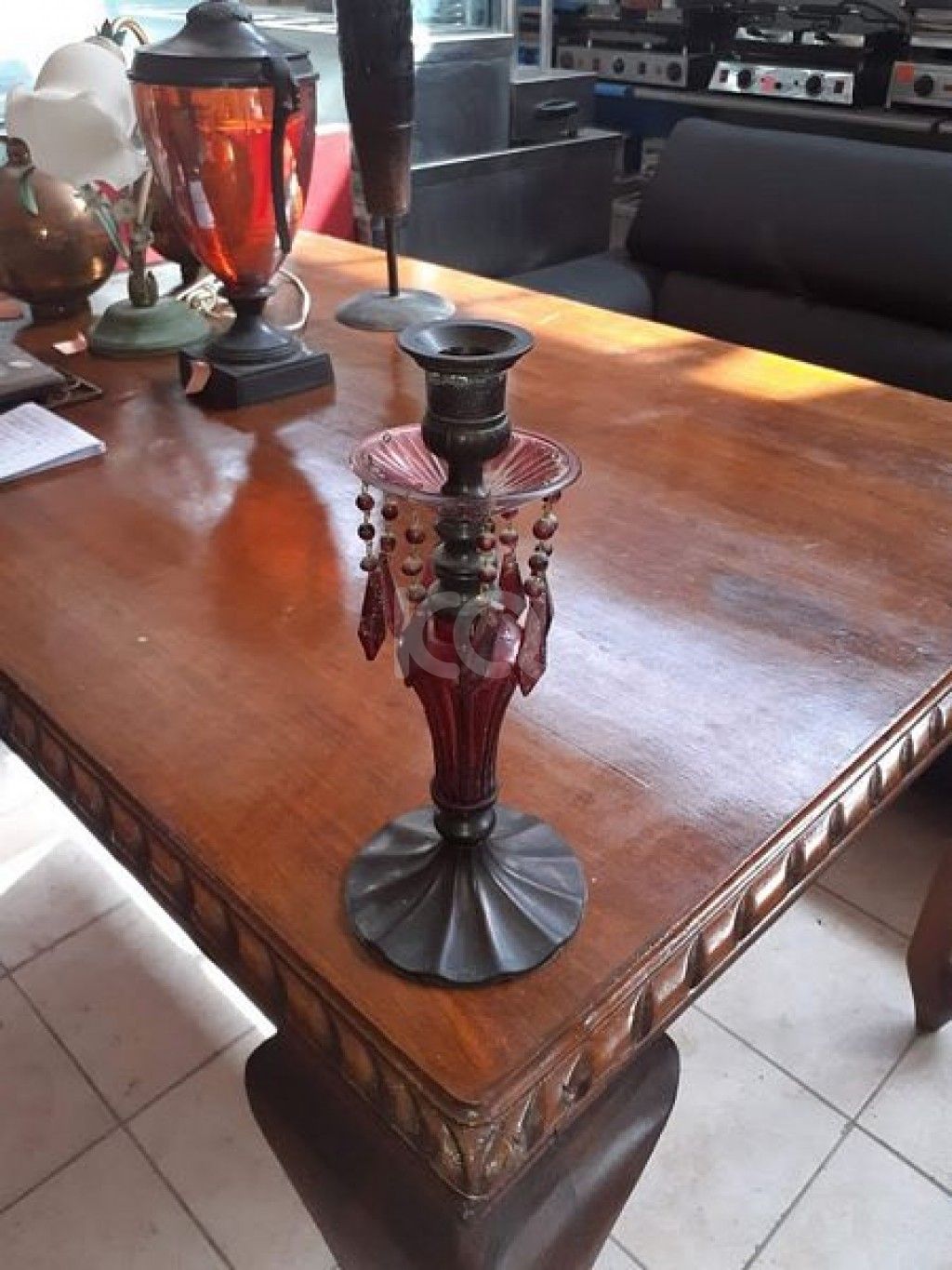 Κηροπήγιο, σε χρώμα κόκκινο- μαύρο με κόκκινες χάντρες. Σε καλή κατάσταση.