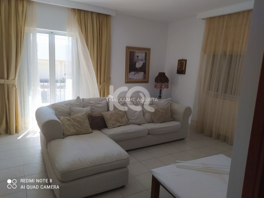 Furnished and electrically equipped, 4-room apartment – maisonette, 140 sq.m, ground floor 2 levels. It has a single living room – kitchen, 3 bedrooms, bathroom with bathtub, w/c, autonomous heating, fireplace, solar and electric water heater with boiler, autonomous PPC clock, balconies, garden, storage room, basement, parking. No pets accepted. Close to a stop. Rent price 950 euros.