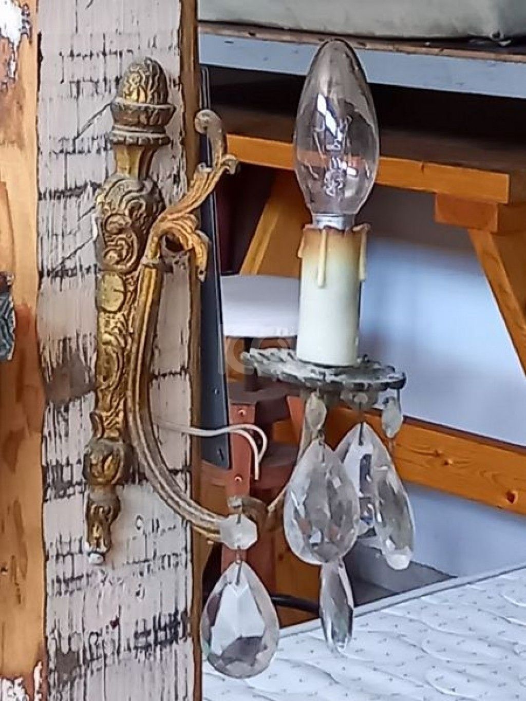Μεταχειρισμένη σε μπρούτζινη βάση με κρύσταλλα τύπου δάκρυ να κρέμονται. Διατίθεται σε ζευγάρι. Σε καλή κατάσταση. Τιμή 70€/ζευγάρι.