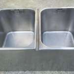 μεταχειρισμένα ανοξείδωτα δοχεία διπλής φριτέζας, σε καλή κατάσταση, διαστάσεις 53Χ33Χ22, κάθε δοχείο 26Χ22Χ20, τιμή 80€.