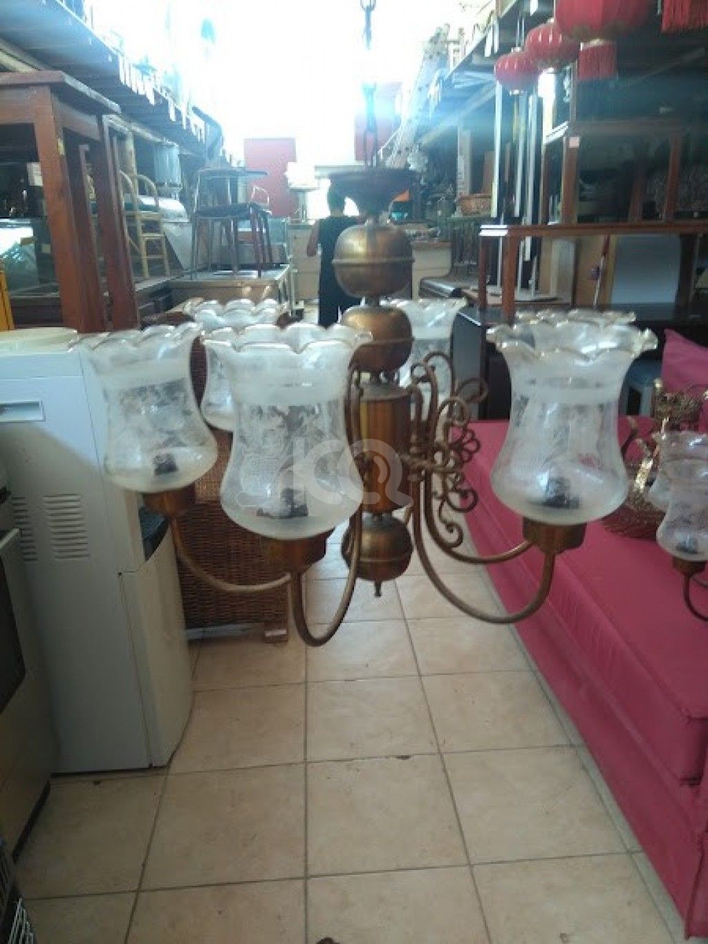 μεταχειρισμένος επτάφωτος, γυάλινος, σε κλασικό σχέδιο. Δύο τεμάχια διαθέσιμα. Σε καλή κατάσταση.