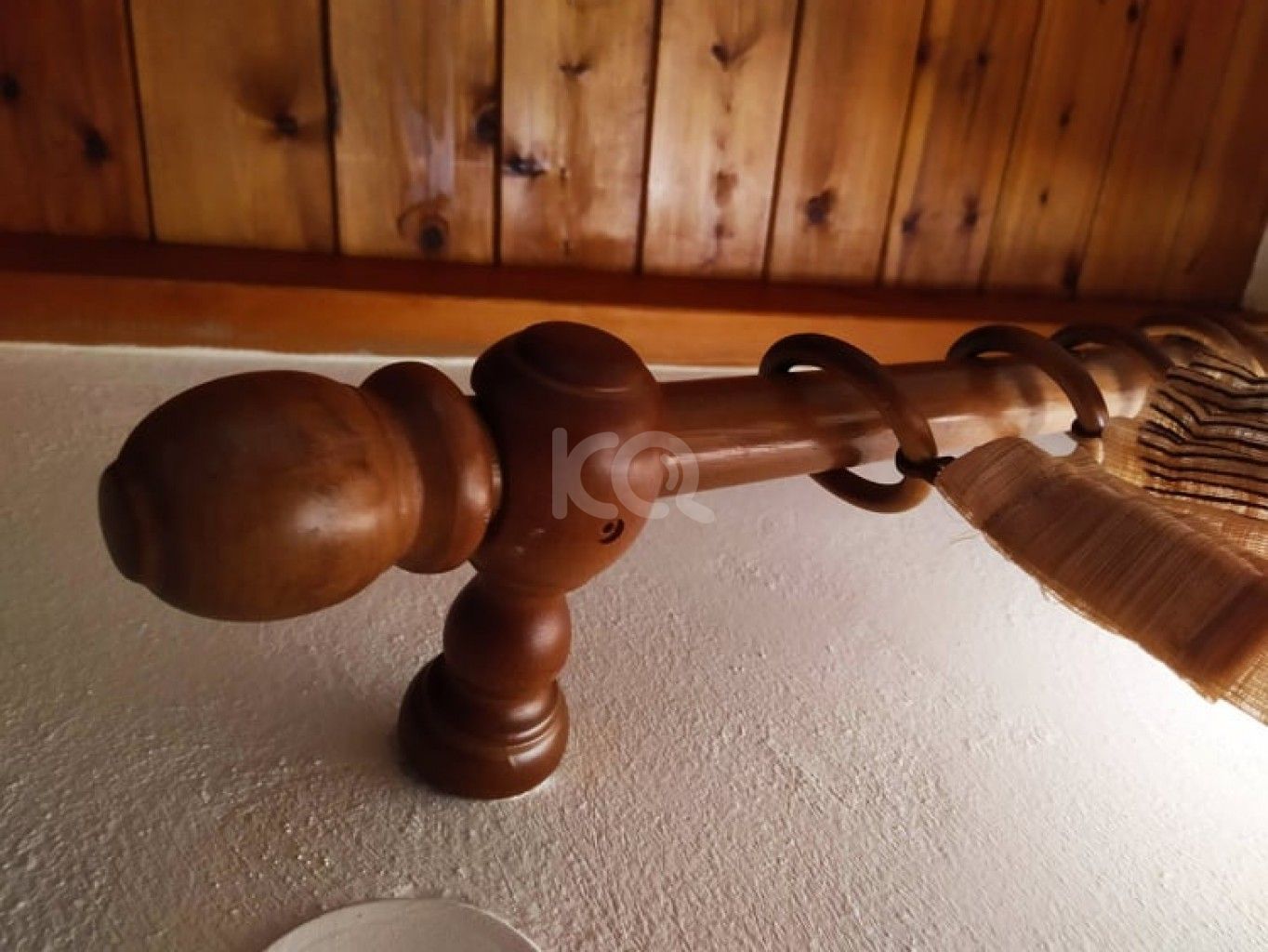 ξύλινο στρογγυλό 140εκ, διάμετρος κουρτινόβεργας 3,5εκ. σε μελί χρώμα με 2 στρογγυλά διακοσμητικά άκρα βαρέος τύπου, 10 κρίκους (με γαντζάκια πλαστικά τύπου παραμάνας με κρίκο), 2 πλαινά στηρίγματα από 100% ξύλο μασίφ