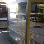 μεταχειρισμένη, τροχήλατη, απο στιβαρή ξύλινη κατασκευή, σε απαλή απόχρωση του πράσινου. Είναι κλειστή από τρεις πλευρές με τζάμι. Σε καλή κατάσταση. Διαστάσεις: 1,80Χ78Χ1,82.