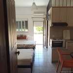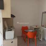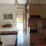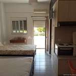Airy, furnished and electrically equipped, 1-room studio, 1st floor, 30 sq.m. It has an open plan living room – kitchen – bedroom, bathroom with shower, air conditioning, solar water heater, aluminum frames, balcony, parking. Pets are not accepted. In a quiet neighborhood, overlooking mountain and greenery. Close to bus stop, sea and s/m. It is given only for short-term rental. Rental price 250 euros.