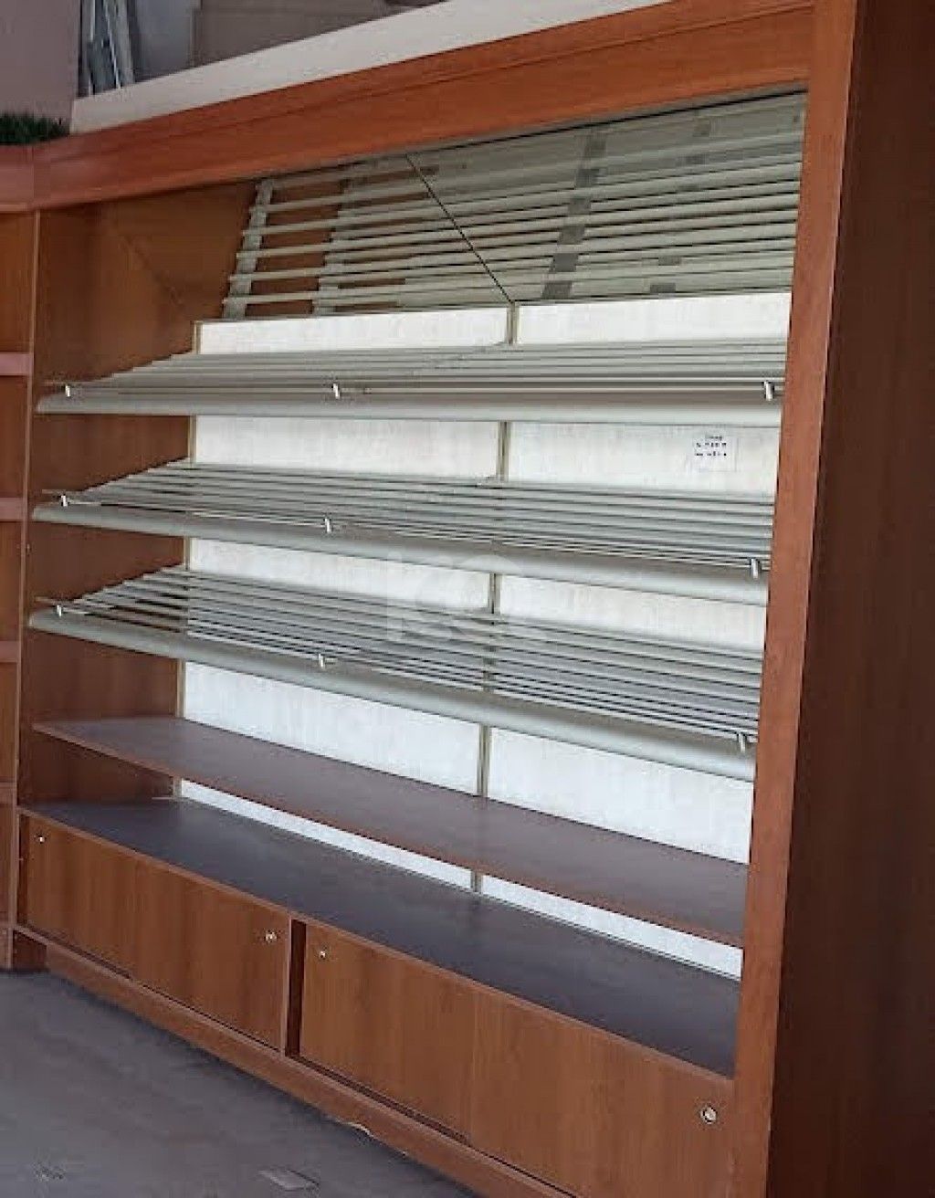 μεταχειρισμένη, ξύλινη, με τέσσερα ράφια, ειδικά για την τοποθέτηση ψωμιού και με αποθηκευτικό χώρο, σε καλή κατάσταση. Διαστάσεις: 2,40x60x2,30.
