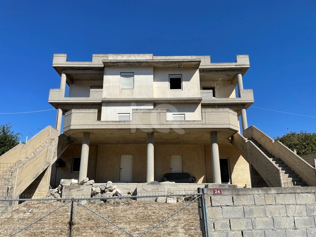 ΚΟΥΝΑΒΟΙ ημιτελές κτίριο (κατασκευής 1995) όπου βρίσκεται σε οικόπεδο 745 τμ. και αποτελείται από δυο ισόγεια διαμερίσματα 114 τμ έκαστος και δυο μεζονέτες (στους σοβάδες) 150 τ.μ έκαστος 1ου & 2ου αποτελούνται η κάθε μια από ενιαίο κουζίνα σαλόνι τέσσερα υπνοδωμάτια, δωμάτιο βεστιάριο δυο μπάνια με μεγάλες βεράντες αποκλειστική χρήση μεγάλου κήπου και parking. Σε πολύ ωραίο σημείο με ανοιχτό ορίζοντα και θέα θάλασσα. Tιμή 400.000€