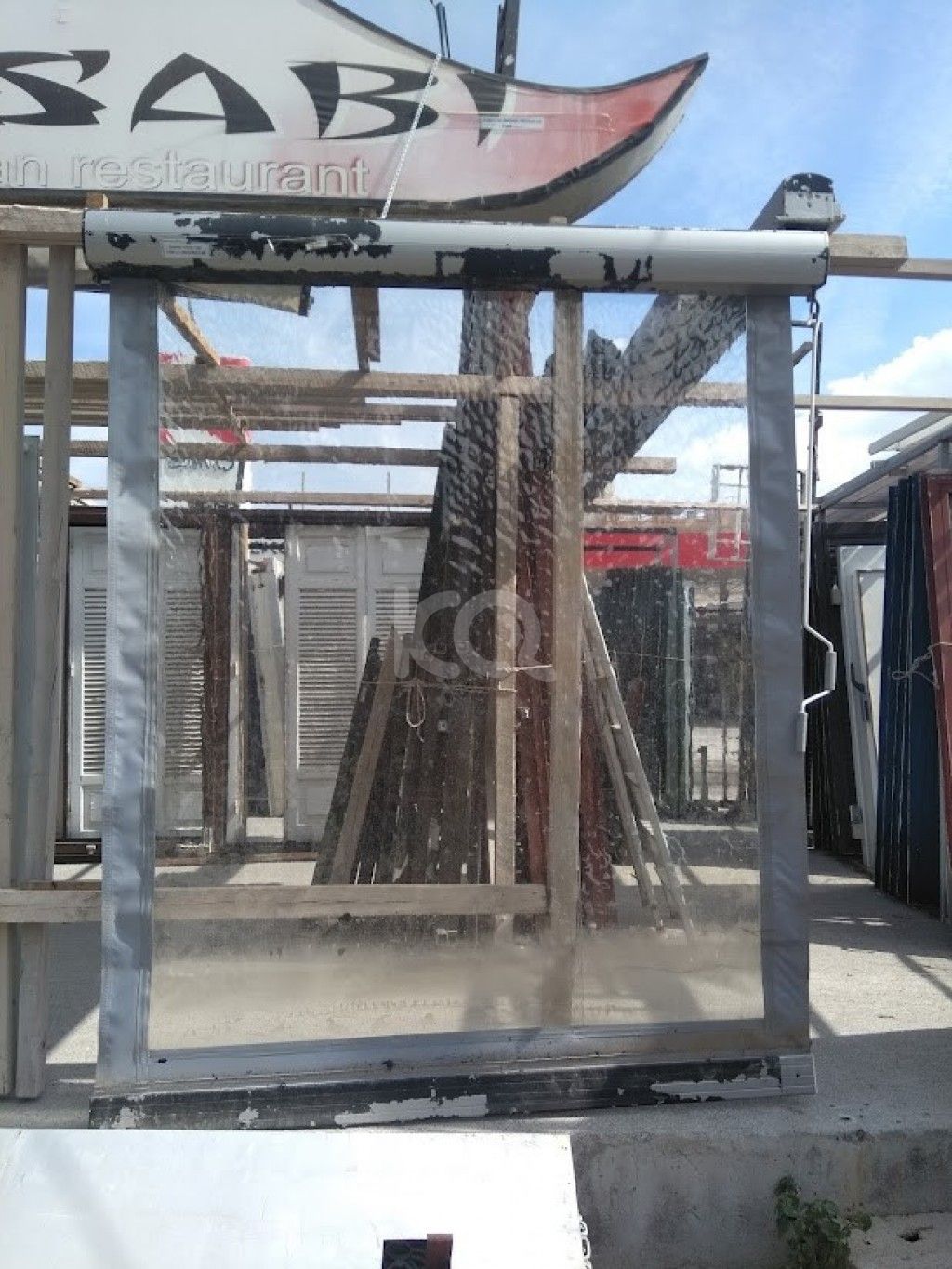 Μεταχειρισμένη, διάφανη, κάθετη τέντα με ζελατίνα και χειροκίνητο μηχανισμό, σε καλή κατάσταση. Μήκος τέντας: 1,90μ. Άνοιγμα τέντας: 2,50μ.