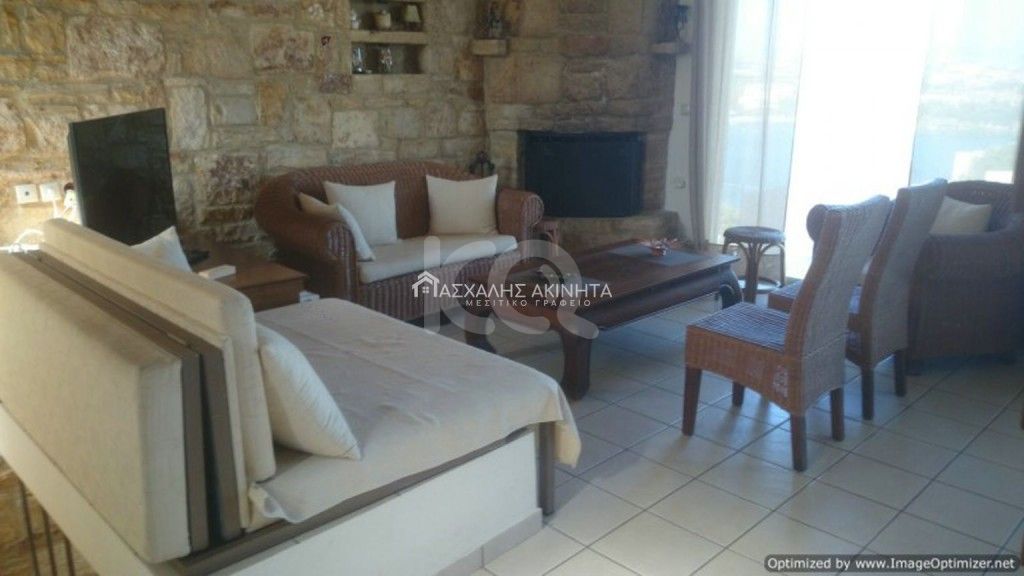 Fully furnished and electrically equipped, detached house – maisonette, 95 sq.m, ground floor. It has a single living room – kitchen, 2 bedrooms, 3 bathrooms, autonomous heating, air conditioning, fireplace, solar water heater, autonomous PPC clock, internet, terrace, balcony, barbecue area, swimming pool – jacuzzi, parking. It is also given for short-term rental. No pets accepted. With unlimited views. PEA G. Rent price 1000 euros.