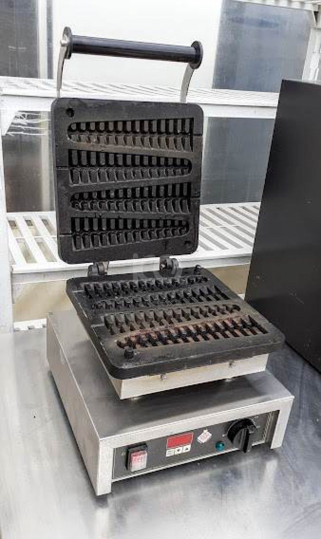 Μεταχειρισμένη, βαφλιέρα, M&M 820094, σε σχήμα ξυλάκι. Με πλάκες αλουμινίου και με αντικολλητική επίστρωση. Σε καλή κατάσταση. Διαστάσεις: 31x34x30εκ. Η τιμή δεν περιλαμβάνει φπα 24% και μεταφορικά.