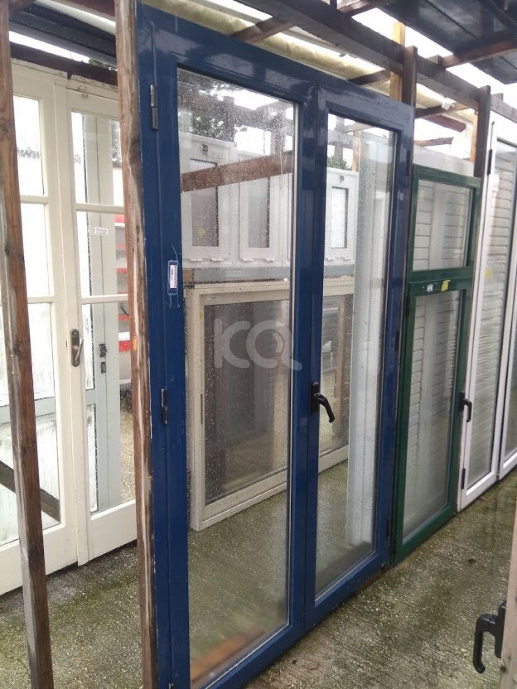αλουμινίου με διπλό τζάμι, χρώμα μπλε. Διαστάσεις περίπου 136Χ210εκ. Η τιμή δεν περιλαμβάνει ΦΠΑ 24% και μεταφορικά.