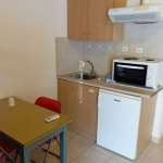 Airy, frontage, furnished, renovated, 1-room studio, 25 sq.m, 2nd floor. It has a single kitchen-n/d, electrical appliances (without washing machine), solar & electric water heater, PPC meter, independent heating, air conditioning, balcony. No pets accepted. No utilities. Ideal for students. Rent price 270 euros.