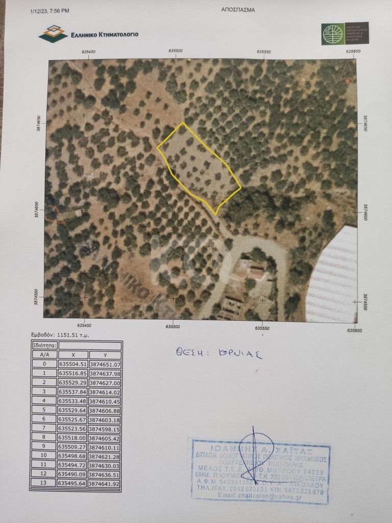 Βιάννου, αγροτεμάχιο, 1151τμ, περιέχει ελαιόδεντρα, συνορεύει με δρόμο, επίπεδο, θέα απεριόριστη, βουνό, δάσος, άρτιο, τιμή 3000€.