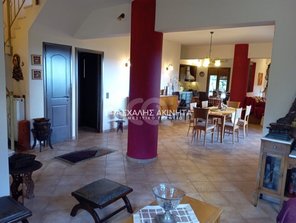 Διαμπερές, προσόψεως, μονοκατοικία – μεζονέτα, 3 επιπέδων, 193τ.μ, σε οικόπεδο 6.500τ.μ. Διαθέτει 4 υ/δ, 3 μπάνια, 1 wc, κουφώματα αλουμινίου, αυτόνομη θέρμανση, κλιματισμό, ηλιακό θερμοσίφωνα, τζάκι, μπαλκόνια, βεράντες, αυλή, κήπο, αποθήκη, πάρκινγκ, πισίνα, περίφραξη. Στο ισόγειο διαθέτει ενιαία κουζίνα – καθιστικό, τραπεζαρία, wc, αποθήκη. Στον 1ο όροφο διαθέτει 3 υ/δ, 2 μπάνια και στο 2ο όροφο διαθέτει ένα ξενώνα & 1 μπάνιο. Σε ήσυχη γειτονιά. Θέα θάλασσα, βουνό, πράσινο. Τιμή πώλησης 500.000 ευρώ.