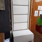 Μεταχειρισμένη, επιτοίχια κρεμάστρα ρούχων, με λευκή δερμάτινη πλάτη και 1 συρτάρι. Σε πολύ καλή κατάσταση. Διαστάσεις: 75x50x210εκ. Τιμή: 150€/τμχ. Η τιμή δεν περιλαμβάνει ΦΠΑ 24% και μεταφορικά.