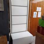 Μεταχειρισμένη, επιτοίχια κρεμάστρα ρούχων, με λευκή δερμάτινη πλάτη και 1 συρτάρι. Σε πολύ καλή κατάσταση. Διαστάσεις: 90x50x210εκ. Τιμή: 150€/τμχ.