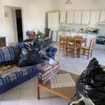 Frontage, corner, in excellent condition, without furniture, 3-room apartment, 95 sq.m., ground floor. It has a single living room – kitchen, 2 bedrooms, 1 bathroom, 1 wc, standalone PPC clock, air conditioning, wood stove, fireplace, parking, balcony, loft. No utilities. Unlimited view. Pets accepted. Rent price 500 euros.
