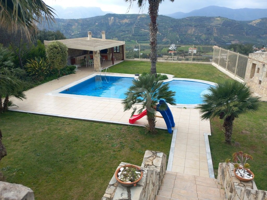 πωλείται πολυτελής βίλα 350τμ με πισίνα και 100τμ βοηθητικό χώρο, σε αυτόνομο οικόπεδο 2000τμ . Διαμορφώνεται σε τρία επίπεδα και προσφέρει 6 υπνοδωμάτια, 3 μπάνια, πλήρως εξοπλισμένη κουζίνα , πολυτελή επίπλωση , φωτιστικά , ηλεκτρικά ρολά και ηλεκτρικές κουρτίνες , κλειστό πάρκινγκ τεσσάρων αυτοκινήτων με ηλεκτρικά ρολά , διαμορφωμένο κήπο με γκαζόν, μπάρμπεκιου, πισίνα, δέντρα και λουλούδια . Επίσης προσφέρει βεράντες με θέα θάλασσα , αυτόνομη θέρμανση , ηλιακό θερμοσίφωνα και σε κοντινή απόσταση φαρμακείο, mini market, ταβέρνες, βενζινάδικο.