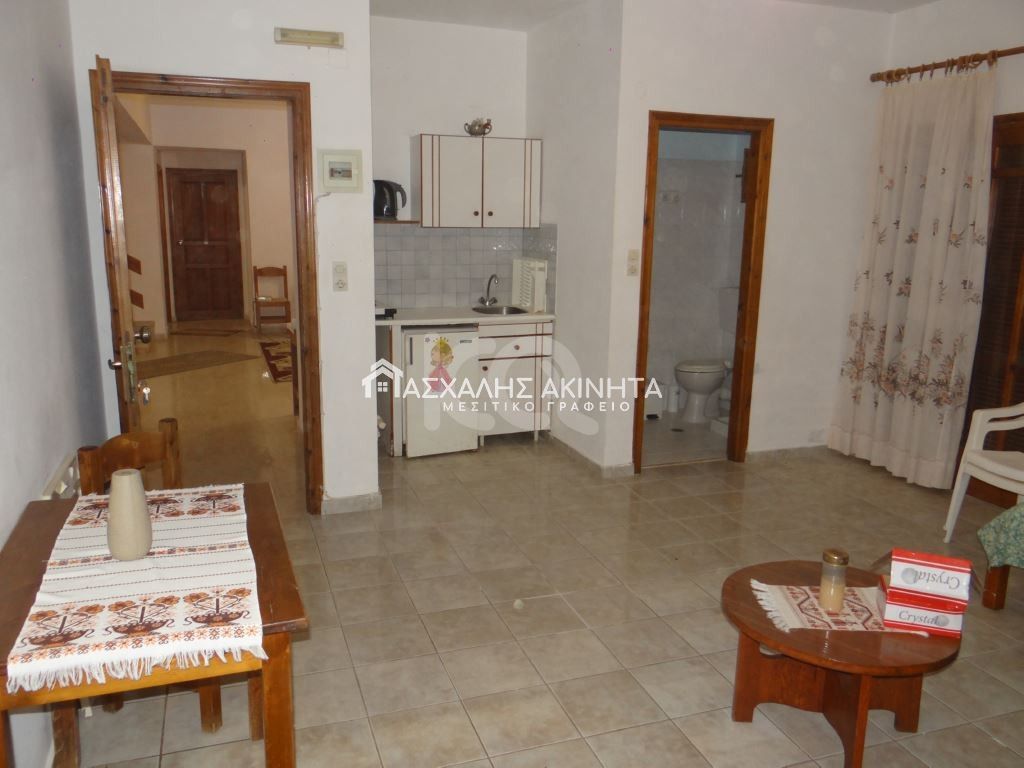 Προσόψεως, συγκρότημα με 9 δίχωρα διαμερίσματα 400τμ, ημιώροφου και 1ου ορόφου, σε οικόπεδο 1 στρέμματος. Τα διαμερίσματα είναι από 40τμ έως 52τ.μ, και διαθέτουν ενιαίο χώρο, χωριστό υ/δ, λουτρό, μπαλκόνι. Υπάρχει μεγάλη ρεσεψιόν, κήπο, πισίνα. Θέα θάλασσα. ΠΕΑ Β. Τιμή πώλησης 600.000 ευρώ.