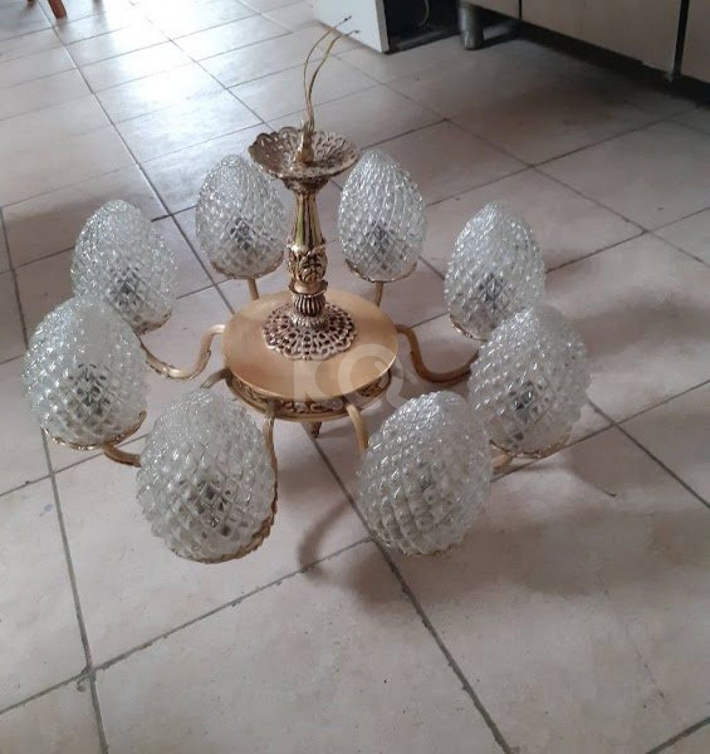 Μεταχειρισμένο πολύφωτο αλπακάς, εσωτερικού χώρου, 8φωτο, με γυαλί σε σχήμα κουκουνάρι. Σε άριστη κατάσταση. Η τιμή δεν περιλαμβάνει ΦΠΑ 24% και μεταφορικά.