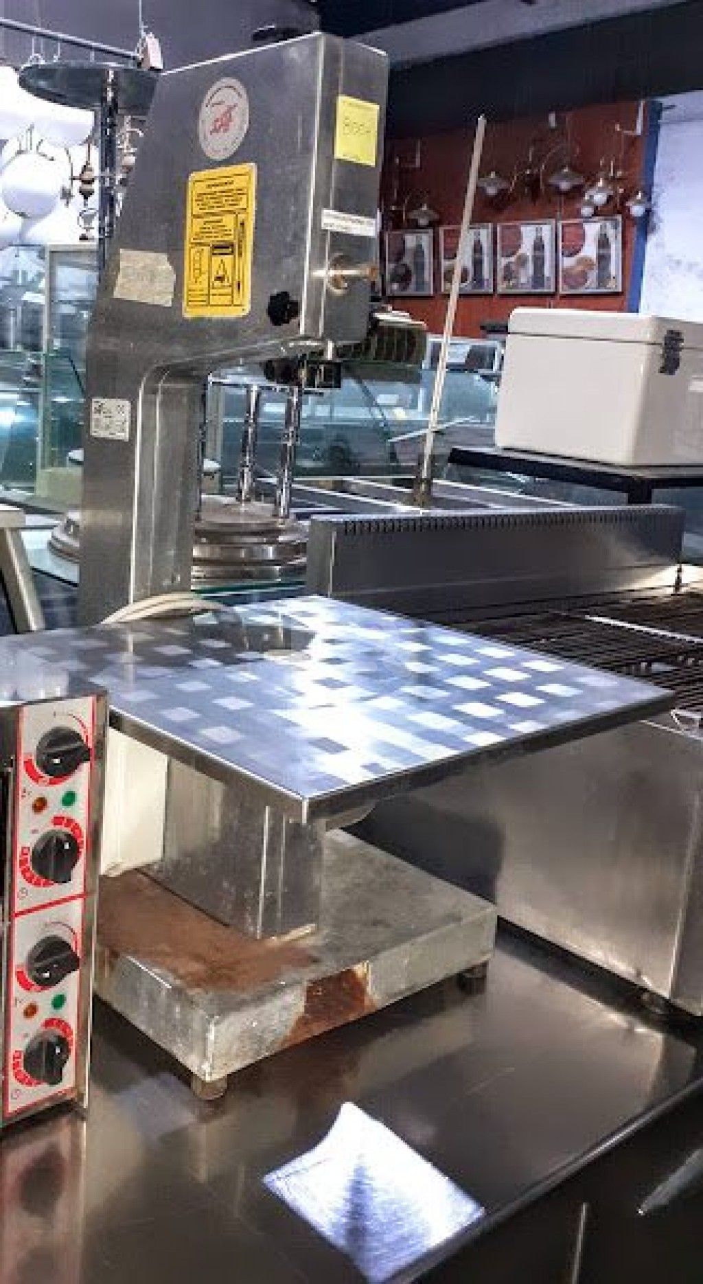 Μεταχειρισμένη πριονοκορδέλα τροφίμων, CGT S.183, 41KG, 1KW, τριφασική. Με μέγιστο ύψος κοπής: 28εκ. Σε πολύ καλή κατάσταση. Διαστάσεις: 46x52x94εκ. Η τιμή δεν περιλαμβάνει φπα 24% και μεταφορικά.