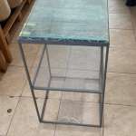 Μεταχειρισμένο τραπεζάκι σαλονιού, με μεταλλικό σκελετό και μαρμάρινο καπάκι, με προστατευτικό τζάμι. Σε άριστη κατάσταση. Διαστάσεις: 40x40x70εκ. Η τιμή δεν περιλαμβάνει ΦΠΑ 24% και μεταφορικά.