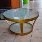 Μεταχειρισμένο τραπέζι σαλονιού, με μεταλλικό σκελετό και γυάλινο καπάκι. Σε άριστη κατάσταση. Φ76εκ, Υ41εκ. Η τιμή δεν περιλαμβάνει φπα 24% και μεταφορικά.