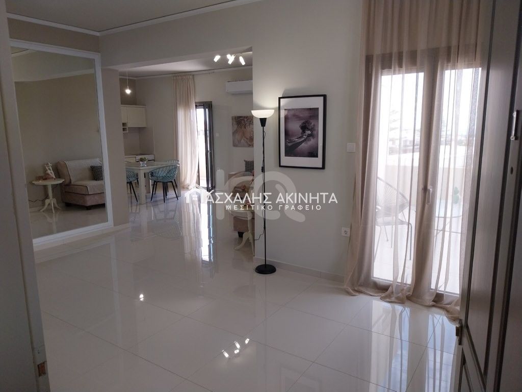 Πλήρως ανακαινισμένο, προσόψεως, διαμπερές, πλήρως επιπλωμένο και ηλεκτρικά εξοπλισμένο 3αρι διαμέρισμα, 80 τ.μ, 1ου ορόφου. Διαθέτει ενιαίο χώρο καθιστικό – κουζίνα, 2 υ/δ με εντοιχισμένες ντουλάπες, 1 μπάνιο, κλιματισμό, αυτόνομο ρολόι ΔΕΗ, ηλιακό και ηλεκτρικό θερμοσίφωνα, βεράντα, μπαλκόνι. Δίδεται και για βραχυχρόνια μίσθωση. Θέα πράσινο, βουνό και θάλασσα. Δεκτά μικρά κατοικίδια. Χωρίς κοινόχρηστα. Τιμή ενοικίου 900 ευρώ.