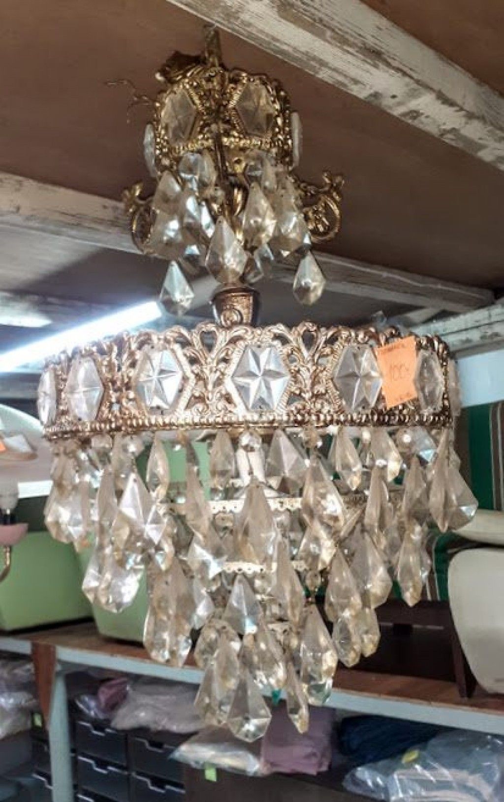 Μεταχειρισμένος πολυέλαιος οροφής, αντίκα, με κρύσταλλα, εξάφωτο. Σε καλή κατάσταση. Η τιμή δεν περιλαμβάνει ΦΠΑ 24% και μεταφορικά.