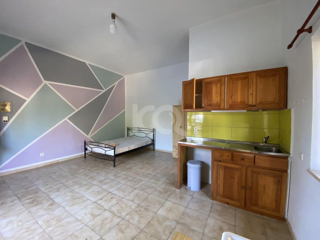 άνετη μονόχωρη γκαρσονιέρα, επιπλωμένη, 30τμ, στο ισόγειο, με μεγάλο γωνιακό μπαλκόνι.