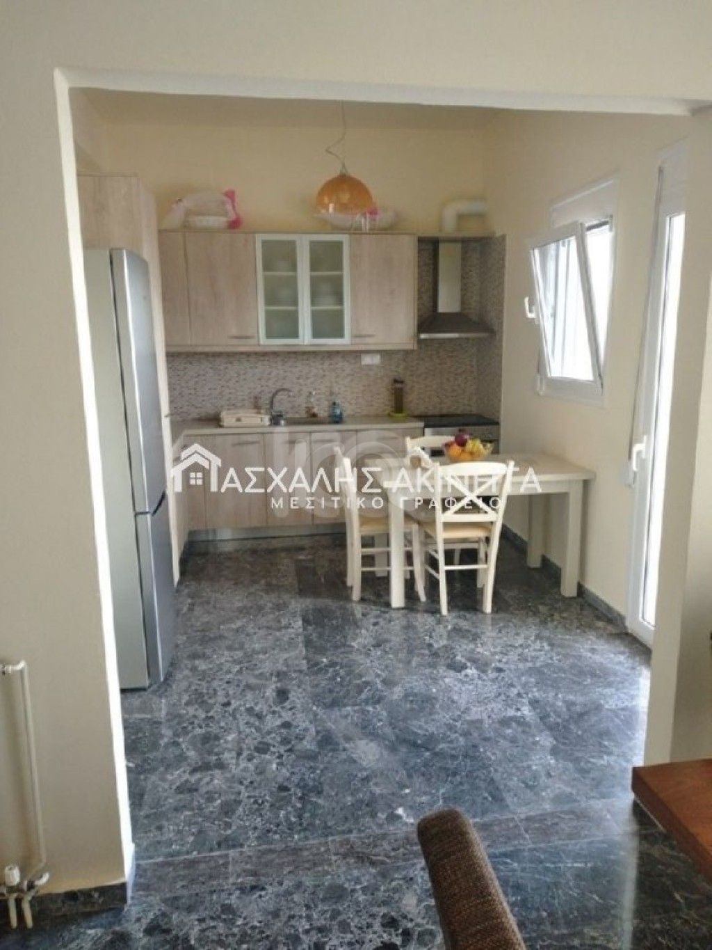Renovated, airy, frontage, 4-room apartment, 130sqm, 1st floor (without elevator) in a plot of 340 sq.m. It has an open plan living room – kitchen, 3 bedrooms, 1 bathroom, autonomous heating, air conditioning, fireplace, solar water heater, autonomous PPC clock, storage room 16sq.m, terrace, garden. View unlimited. Sale price 160.000 euros.