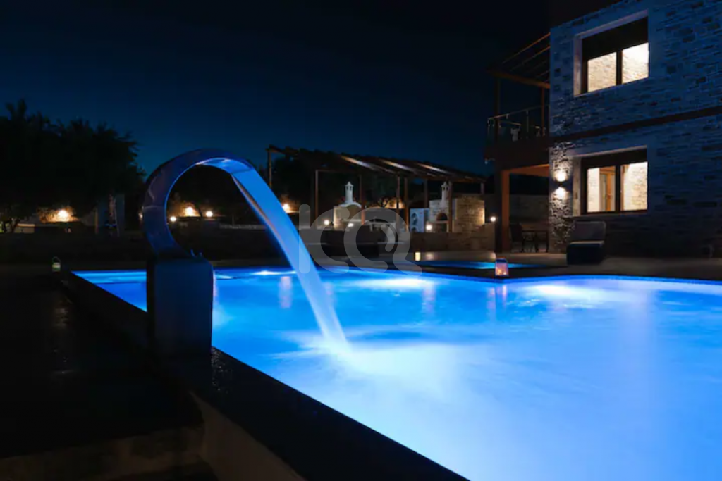 Δήμος Φαιστού, πωλούνται δύο ανεξάρτητες πολυτελείς πετρόκτιστες βίλες - μεζονέτες, σε οικόπεδο εμβαδού 2.300 τ.μ., κατασκευής 2022 με 2 πισίνες η καθεμία, τζακούζι και απεριόριστη θέα θάλασσα, στους γύρω οικισμούς και τις οροσειρές του Ψηλορείτη και των Αστερουσίων.