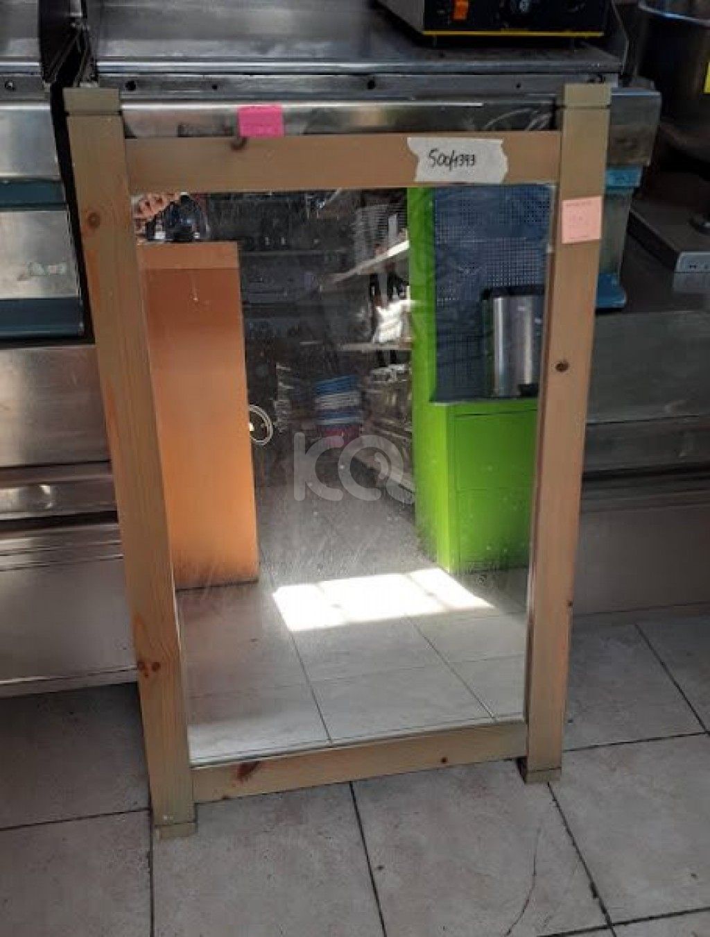 Μεταχειρισμένος καθρέπτης, με ξύλινη κορνίζα, από σουηδικό ξύλο. Σε καλή κατάσταση. Διαστάσεις: 62x100εκ. Η τιμή δεν περιλαμβάνει ΦΠΑ 24% και μεταφορικά.
