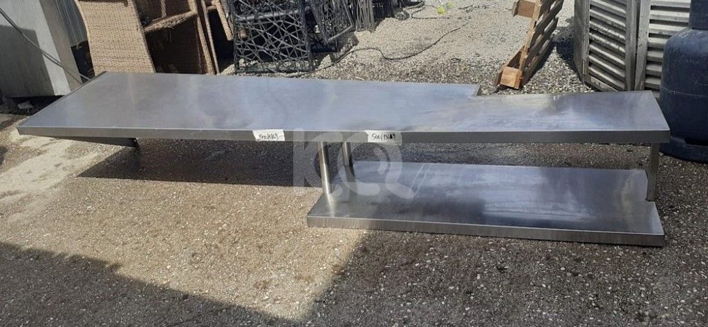 Μεταχειρισμένη, ανοξείδωτη, διπλή ραφιέρα, ειδικής κατασκευής. Σε καλή κατάσταση. Διαστάσεις: 209x49x30εκ. Η τιμή δεν περιλαμβάνει ΦΠΑ 24% και μεταφορικά.
