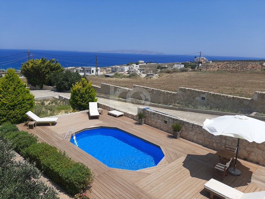Αποτελείται από 3 υπνοδωμάτια εκ των οποίων τα 1 είναι master με ιδιωτικό μπάνιο, 1 κουζίνα, 1 σαλόνι, εσωτερική αποθήκη, 2 μπάνια, 1 WC, μπαλκόνι, αυλή με κήπο, και πισίνα.