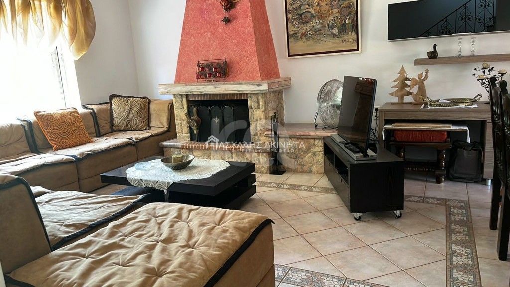 Renovated, airy, furnished or not, fully electrically equipped, detached house – maisonette, 100 sq.m., on a plot of 250 sq.m. It has a single living room – kitchen, 2 bedrooms, bathroom, solar water heater, independent heating, fireplace, storage room, aluminum frames, parking, garden, terrace with gazebo 26 sq.m. with barbecue, grill. Pets accepted. Rent price 860 euros.