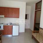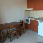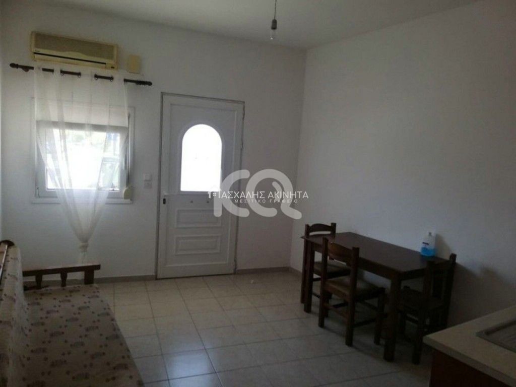 Fully furnished, 2-room studio, ground floor, 35 sq.m. It has a single living room – kitchen, 1 bedroom, bathroom with shower, air conditioning, PPC meter, electric water heater, loft, aluminum frames, yard. No utilities. No pets accepted. In a quiet neighborhood. Near to stop and s/m. Rent price 350 euros.