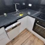- λακαριστή κουζίνα με τεχνογρανίτη στον πάγκο