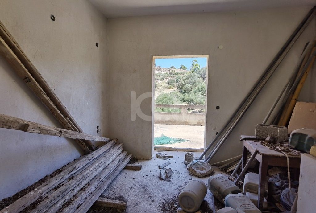 Αποτελείται από ισόγεια αποθήκη 100 τ.μ., 2 ημιτελή διαμερίσματα συνολικού εμβαδού 80 τ.μ. στον 1ο όροφο και ημιτελή διαμέρισμα 35 τ.μ. στον 2ο όροφο .