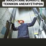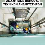 Η εταιρεία Αγαπάκης Lift, με πολυετή εμπειρία στον τομέα της συντήρησης, επισκευής και εγκατάστασης ανελκυστήρων, αναζητά Βοηθό Τεχνικού Ανελκυστήρων για μόνιμη απασχόληση.