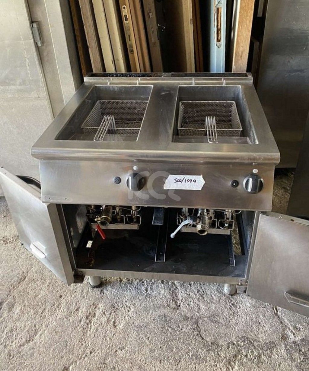 Μεταχειρισμένη, επιδαπέδια, διπλή φριτέζα υγραερίου, ανοξείδωτη,. Σε καλή κατάσταση. Διαστάσεις: 80x75x86εκ. Η τιμή δεν περιλαμβάνει φπα 24% και μεταφορικά.