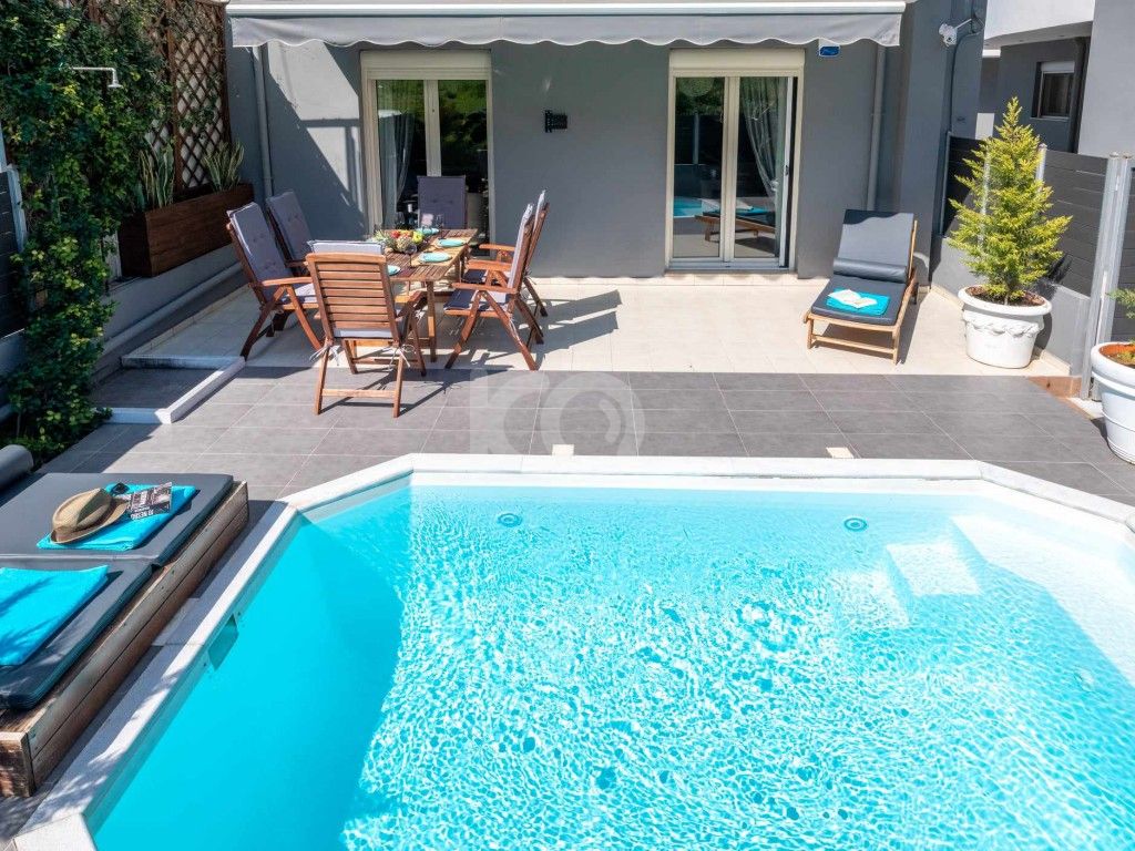μονοκατοικία, μεζονέτα, νεόδμητο, 210τμ, ισογείου, 3 υ/δ, 1 μπάνιο, 1 wc, αυτόνομη θέρμανση, γωνιακό, θέα απεριόριστη, internet, parking, βεράντα, με έπιπλα, ηλ. εξοπλισμένο, ηλιακός θερμοσίφωνας, κήπος, κλιματισμός, μπαλκόνι, πισίνα,αφαλείας, χωρίς κοινόχρηστα.