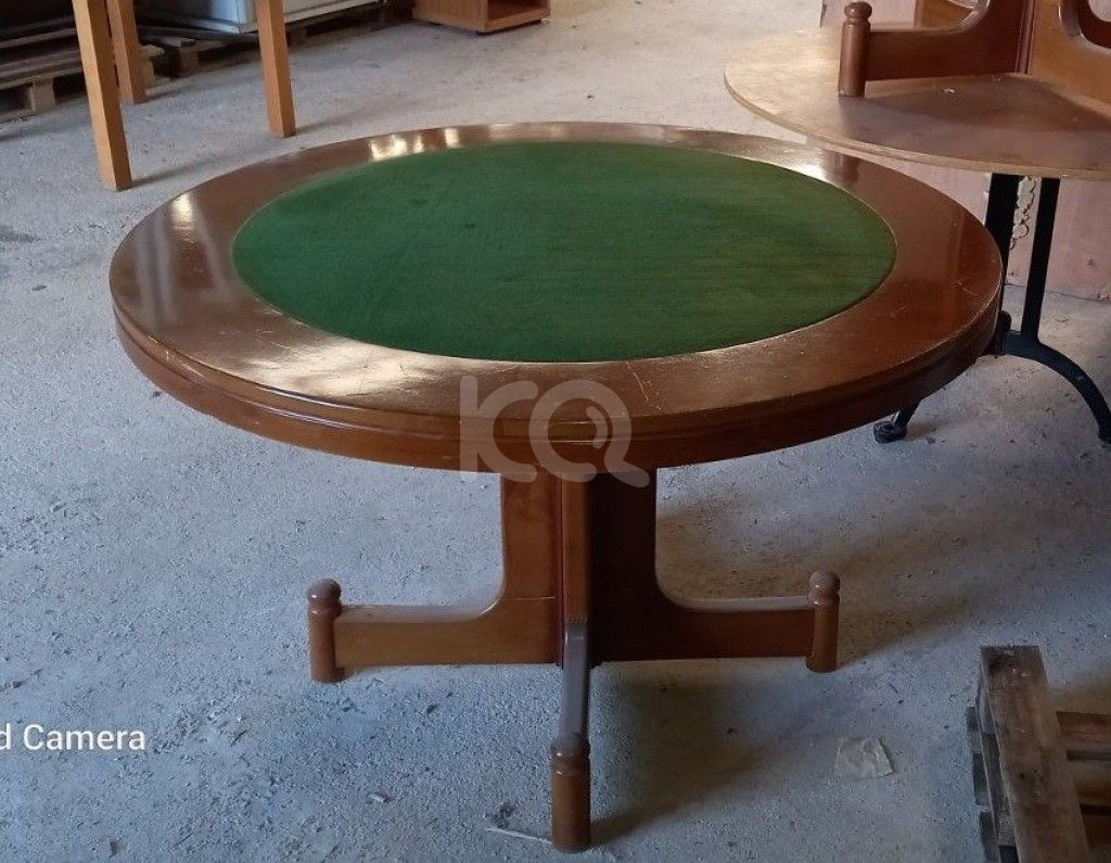 Μεταχειρισμένο, ξύλινο τραπέζι χαρτιών, στρογγυλό, με πράσινη τσόχα, 6 ατόμων. Σε καλή κατάσταση. Η τιμή δεν περιλαμβάνει ΦΠΑ 24% και μεταφορικά.