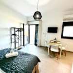 Furnished and electrically equipped, 1-room studio, ground floor, 30 sq.m. It has a single living room – kitchen – bedroom, bathroom with cabin, air conditioning, solar water heater, internet, PPC meter, yard. No pets. It is only given for short-term rental. Rent price 350 euros negotiable.