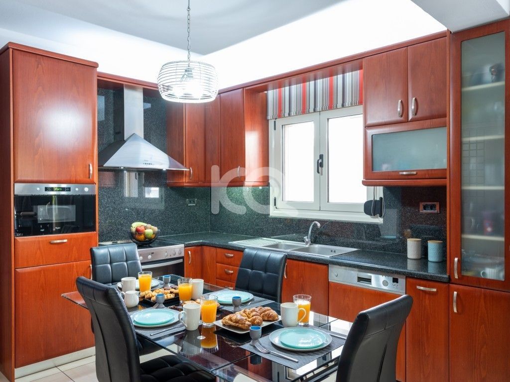 Επιπλωμένη και ηλεκτρικά εξοπλισμένη, μονοκατοικία – μεζονέτα, 210 τ.μ, ισόγειο. Διαθέτει μεγάλο ενιαίο χώρο σαλόνι – κουζίνα, 3 υ/δ, 1 μπάνιο με τζακούζι, 1 wc, κεντρική θέρμανση με καλοριφέρ, κλιματισμό, ηλιακό και ηλεκτρικό θερμοσίφωνα, αυτόνομο ρολόι ΔΕΗ, internet, μπαλκόνι, τέντες, βεράντα, αυλή, ημιυπαίθριοι χώροι, κήπο, πισίνα, γυμναστήριο, υπόγειο, αποθήκη, parking. Χωρίς κοινόχρηστα. Όχι κατοικίδια. Δίδεται μόνο για βραχυχρόνια μίσθωση. Τιμή ενοικίου 1000 ευρώ.