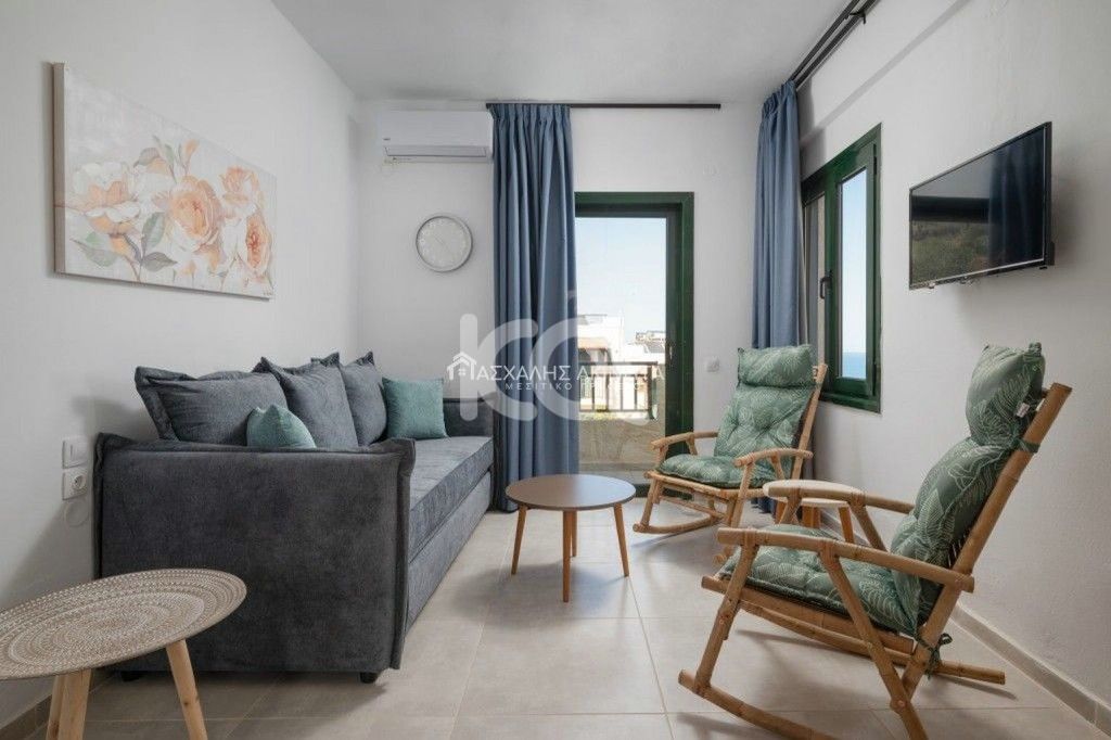 Επιπλωμένο και ηλεκτρικά εξοπλισμένο 2αρι οροφοδιαμέρισμα, 1ος όροφος, 45 τ.μ. Διαθέτει ενιαίο χώρο καθιστικό – κουζίνα, υ/δ, λουτρό με μπανιέρα, κλιματισμό, ανεμιστήρα οροφής, ηλιακό θερμοσίφωνα, αυτόνομη θέρμανση, αποθήκη, ιντερνετ, μπαλκόνι, βεράντα, κοινόχρηστο ολυντήριο, χωρίς κοινόχρηστα. Θέα θάλασσα. Κατοικίδια ευπρόσδεκτα. Διατίθεται μόνο για βραχυχρόνια μίσθωση. Τιμή ενοικίου 870 ευρώ.