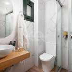 Furnished and electrically equipped 2-room apartment, 1st floor, 45 sq.m. It has a single living room – kitchen, bedroom, bathroom with bathtub, air conditioning, ceiling fan, solar water heater, independent heating, storage room, internet, balcony, terrace, shared laundry, no utilities. Sea view. Pets welcome. Available for short term rental only. Rent price 870 euros.