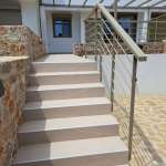 Στο ισόγειο επίσης υπάρχουν κήποι μπροστά και πίσω από την κατοικία και μία άνετη θέση στάθμευσης με όμορφη πέτρινη περίφραξη και παρέχεται δυνατότητα φόρτισης ηλεκτρικού αυτοκινήτου. Γενικότερα η κατοικία προσφέρει αυτονομία θέρμανσης με κλιματιστικά σε κάθε χώρο, ηλιακό θερμοσίφωνα με μπόιλερ, εξωτερική θερμομόνωση, γκαραζόπορτα με ηλεκτρικό άνοιγμα, εγκαταστάσεις για μικρό shower ή μικρή κουζίνα στην ταράτσα, κουφώματα αλουμινίου με σίτες, ηλεκτρικά ρολά, εγκατάσταση για WiFi και δυνατότητα τοποθέτησης συναγερμού, πατώματα από λευκό μάρμαρο, δρύινα πατώματα στα υπνοδωμάτια και μεγάλες βεράντες με όμορφη θέα στην θάλασσα.